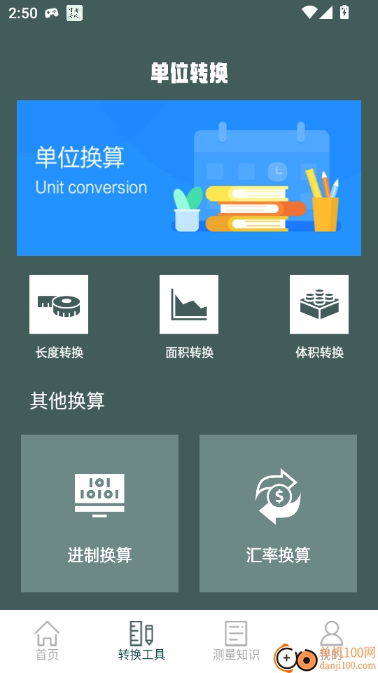 之后在“单位转换”功能菜单界面找到“长度转换”功能按钮并点击进入