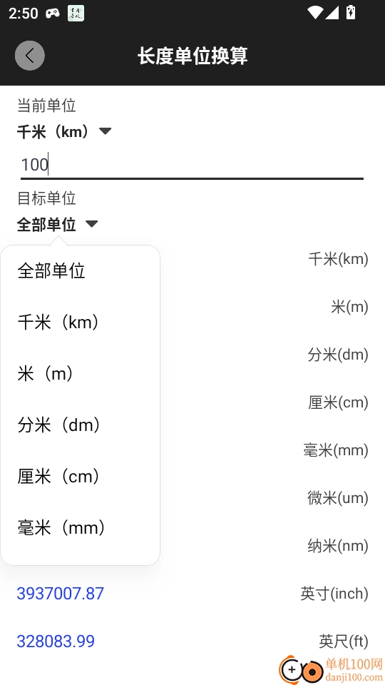 在输入长度数值并选定单位后,就能开展不同长度单位之间的换算工作了。