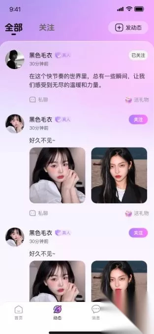 - 文字动态:邂逅有趣之人,点赞互动,进一步探寻你的缘分,逐步迈向属于你的幸福。