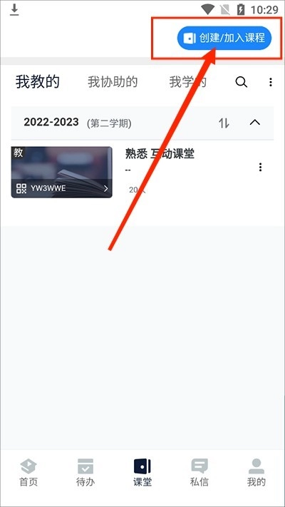 进入课堂页面后,点击右上角的“创建/加入课程”按钮。