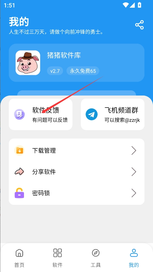 在个人界面中,可以看到“分享软件”,点击即可。