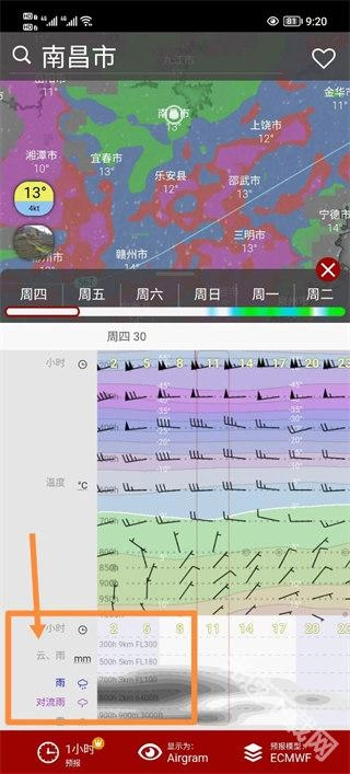 然后点击自己想要查看的地点,就能在下方看到云层的相关信息了。
