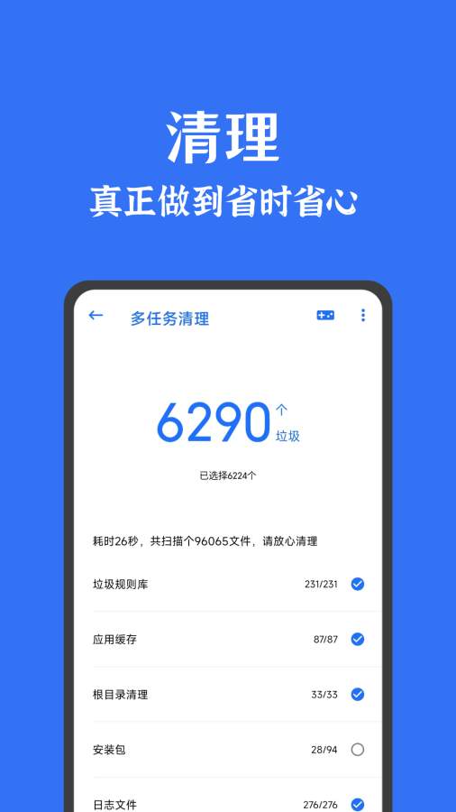 1、除了具备强大的垃圾文件清理功能外,还能够扫描并清理应用缓存、残留文件以及无用安装包等。