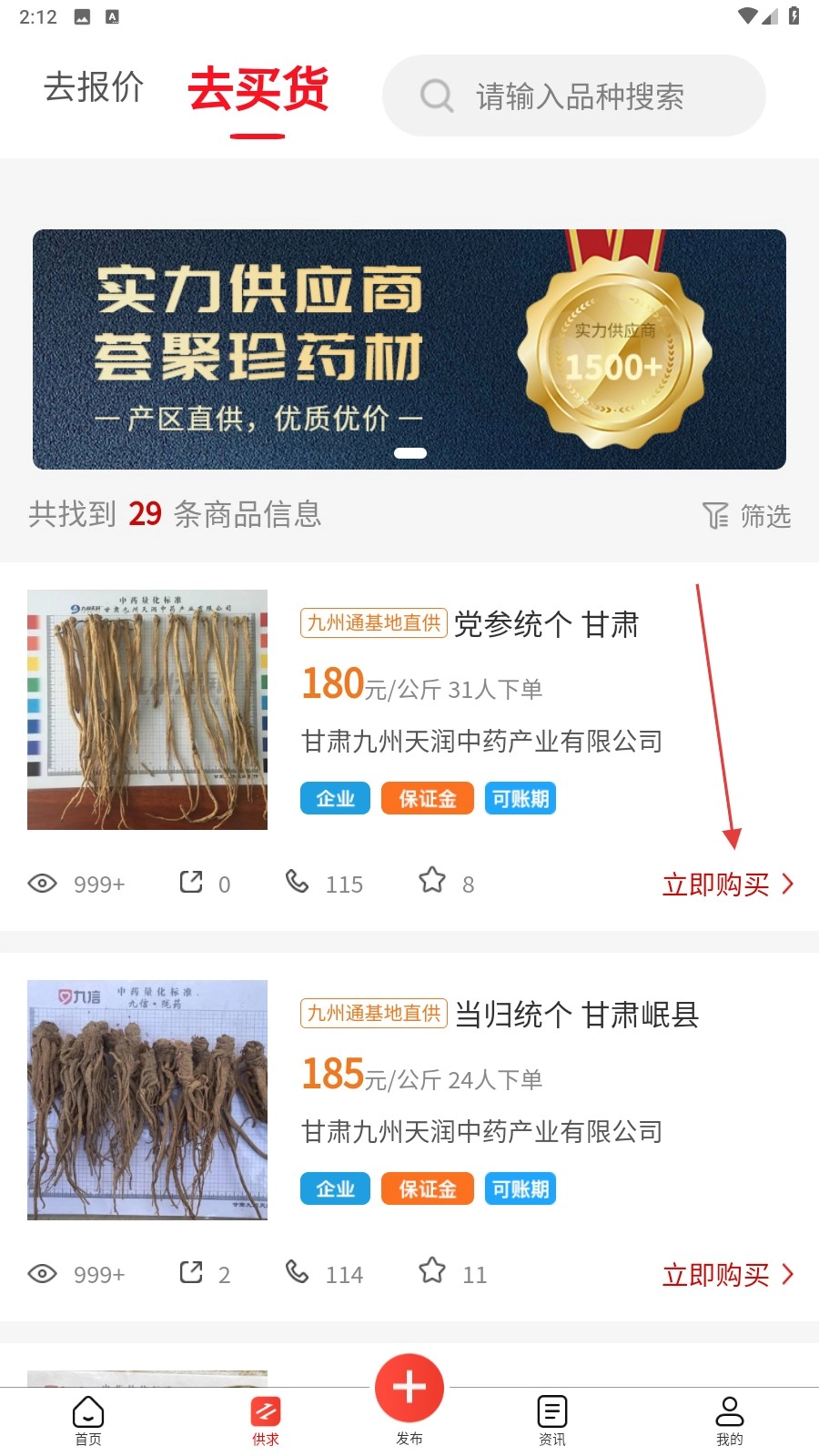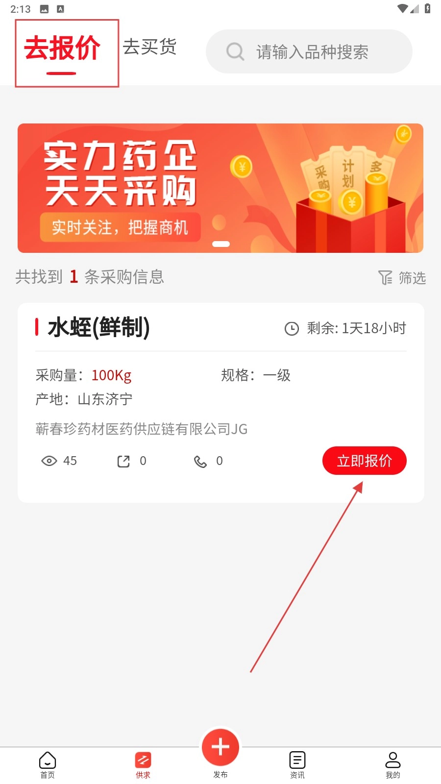 点击【去报价】按钮,即可查看采购相关信息;点击【立即报价】按钮,就能参与报价活动。