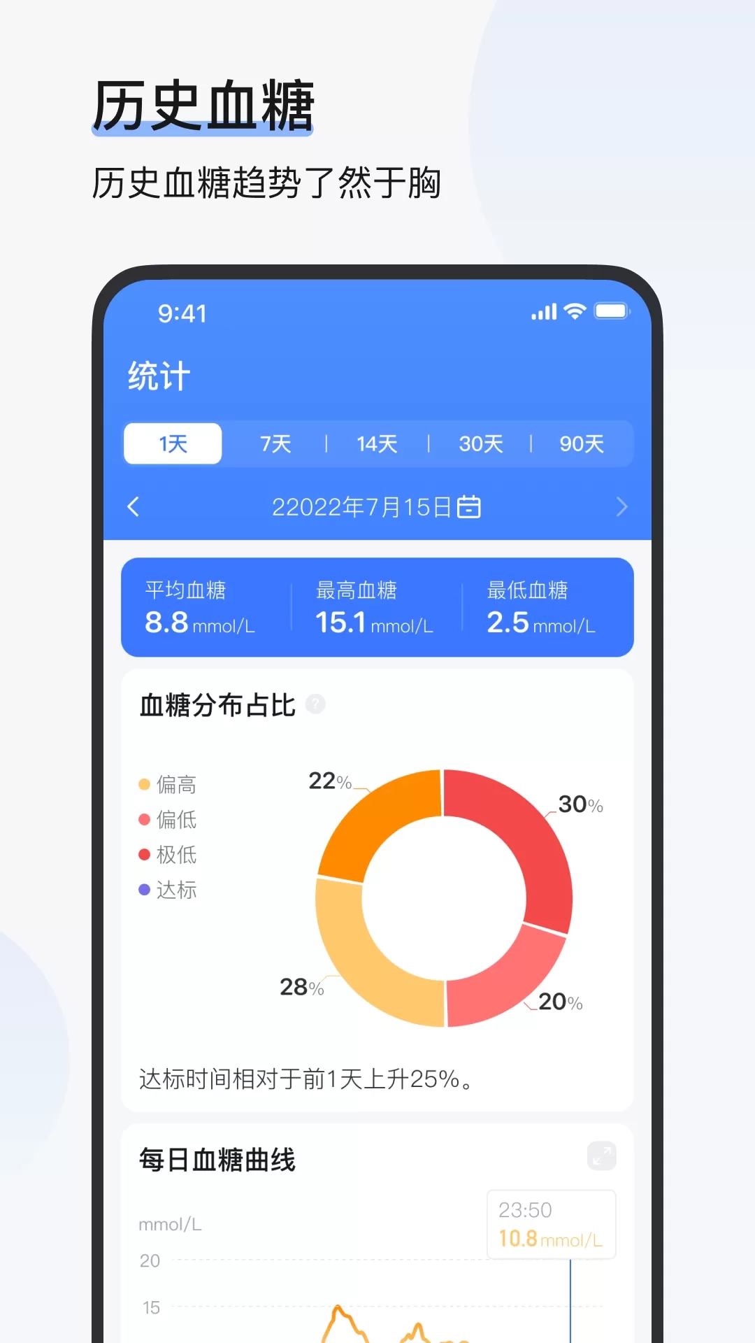 1. 具备血糖历史观察功能,能够全面掌握数据变化趋势。