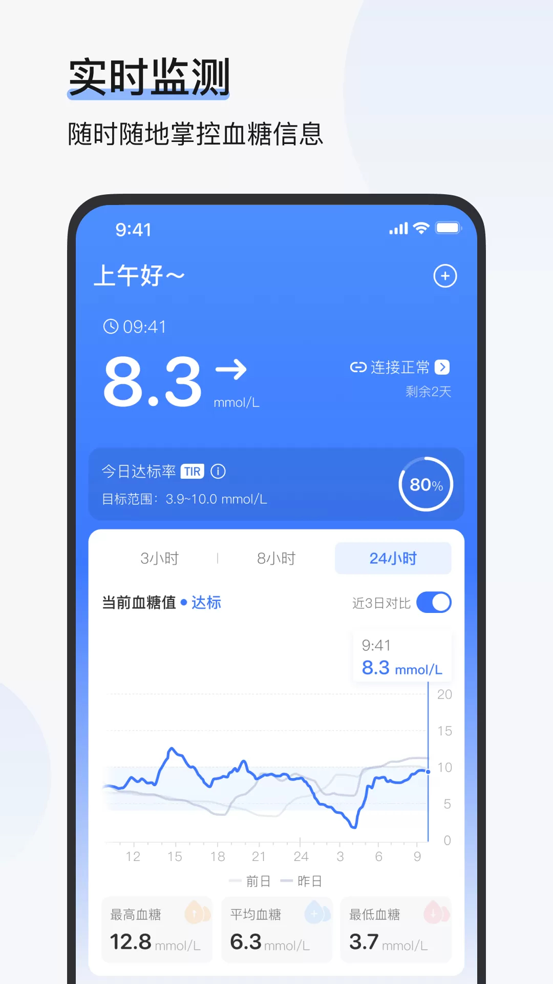 3、实时监控功能上线,助您在线全面了解自身血糖状况。