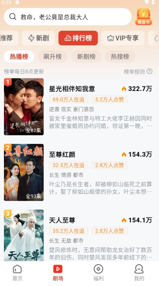 要是不清楚该看些什么,也能直接点击排行榜,看看当下最热门的短剧。