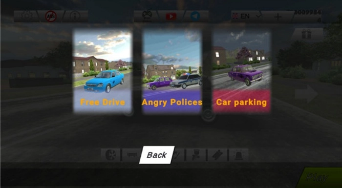 游戏包含自由驾驶、愤怒的警察、停车场模式等多种玩法模式。