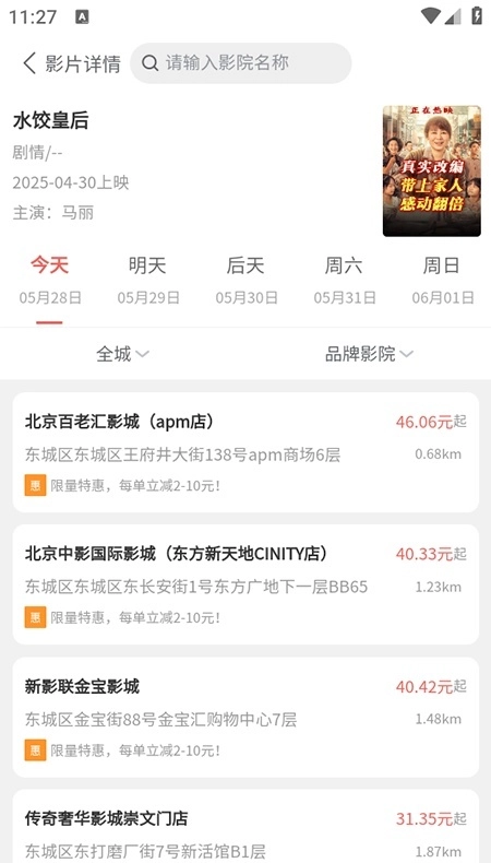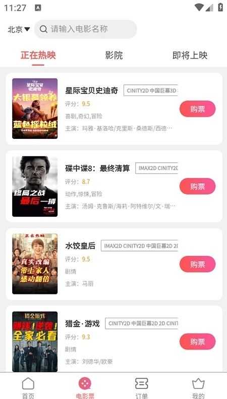 小吃饮品预约:提供影院各类小吃、饮品的预约服务,用户可在购票时一同下单,让观影体验更惬意。
