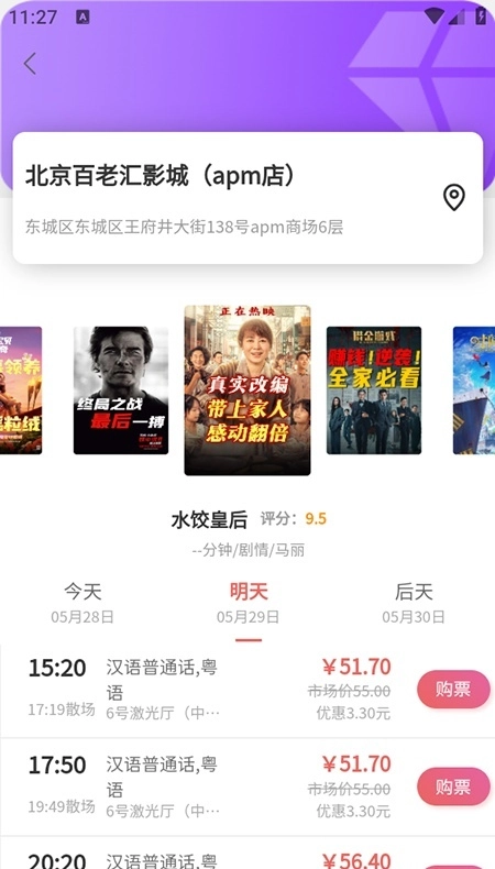 电子票夹:拥有电子票夹功能,便于用户随时查阅购票记录,涵盖订单详情、观影时间、座位信息等内容。