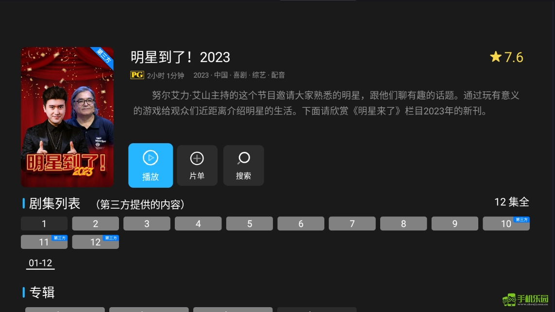 我们就以《明星到了!2026》为例,就能看到对应的影视介绍和剧集内容。