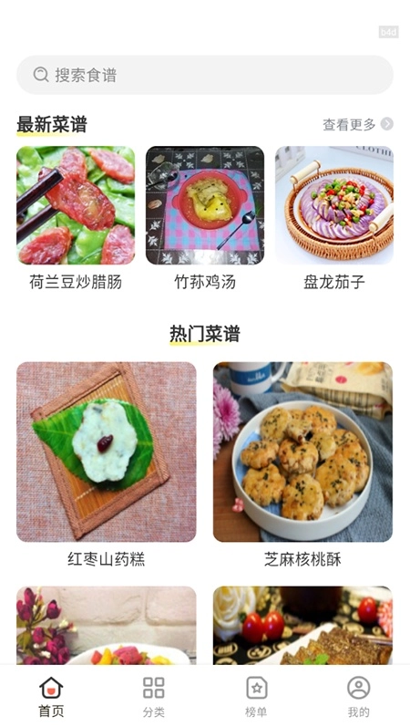 菜谱搜索与浏览功能:用户可借助搜索框迅速查找目标菜谱,输入菜名、食材或菜系相关关键词就能得到对应的结果。同时设有“最新菜谱”“热门菜谱”等专区,便于用户了解当下受欢迎或刚上线的菜品。