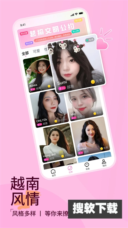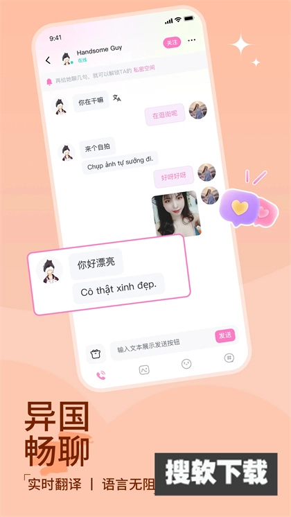越撩【04更新】,越撩2026最新版【04.14更新】是一款在越南女孩与中国男性群体中颇受欢迎的跨国聊天约会应用。用户能够发布动态、图片或是视频,分享生活中的点滴瞬间;同时支持语音与视频聊天功能,以此增强互动时的体验感。该应用借助智能算法与兴趣标签来为用户进行匹配,有效提升了交友的效率。 而越撩免费版的用户,则可以便捷地进入各类聊天室,实现轻松的在线交流。它支持超清晰的语音聊天,还能随时进行随机匹配;并且具备实时监控语音聊天以及同步翻译的功能,即便存在语言障碍的外国用户,也能够毫无阻碍地畅快交流。