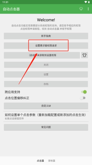 应用实现自动点击功能需要获取辅助功能权限与悬浮窗权限,请在使用前正确配置这些权限。