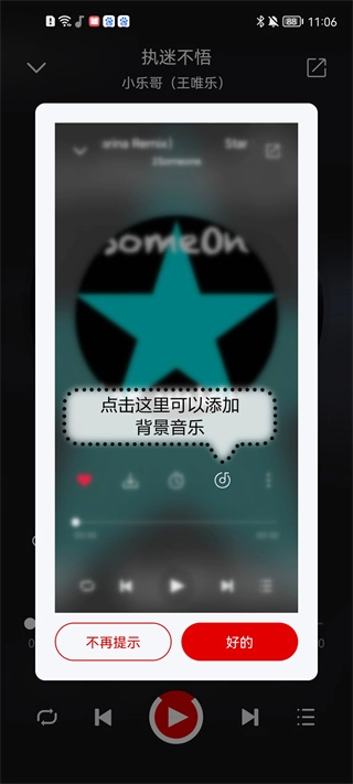 随意点开一首歌曲,就像图里展示的那样,点击那个音乐图标就能把它设成背景音乐,这样视觉效果会更漂亮。