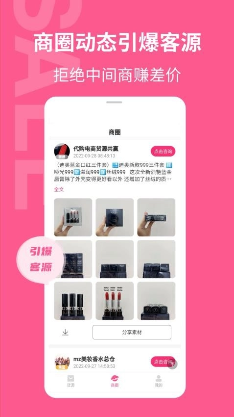 用户能够把自己在商圈里浏览到的优质素材一键分享给好友,操作十分便捷。