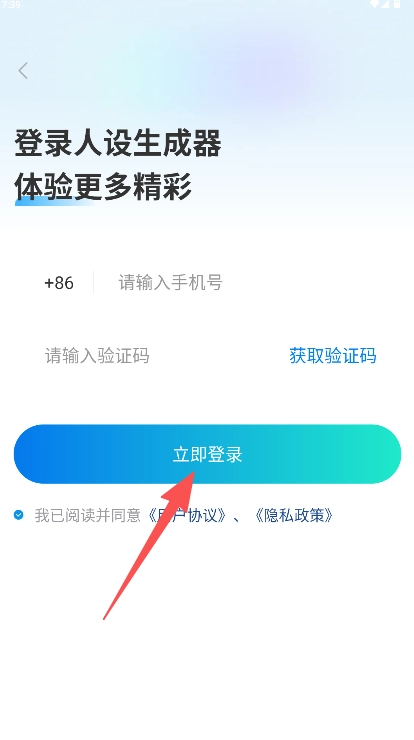 在登录页面填写手机号和验证码,勾选同意相关协议后,点击“立即登录”按钮完成登录操作。