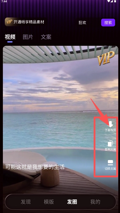 进入视频素材大全界面后,点击右侧边栏的“视频或复制文案”按钮即可完成操作。