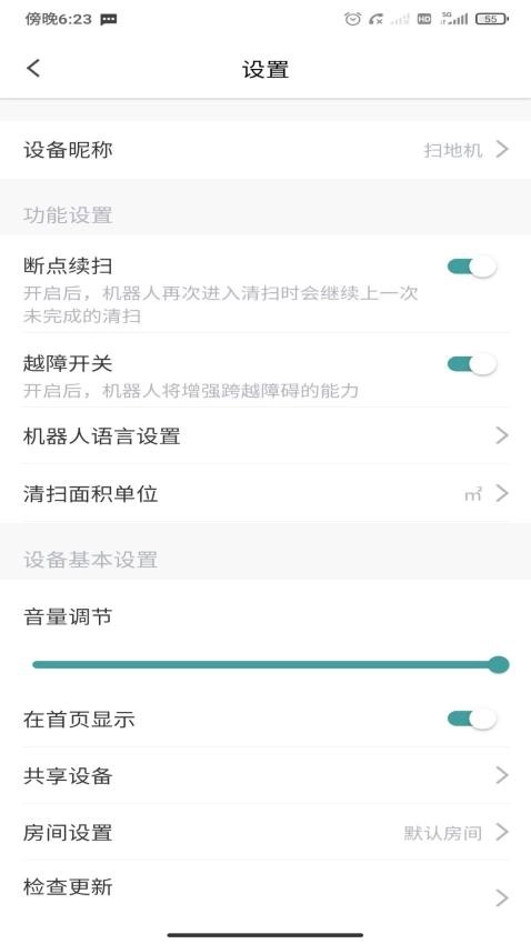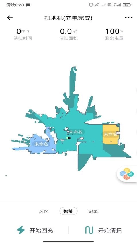 在扫地机器人的设备页面,你可以一键启动清扫模式,同时也能查看它的工作时长。