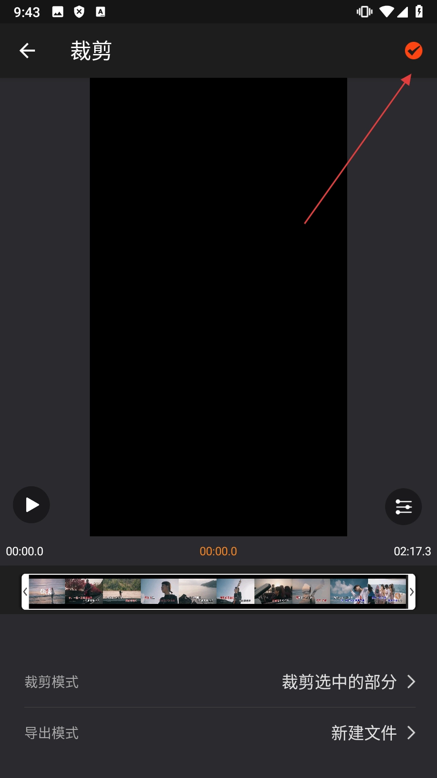 在编辑页面完成裁剪后,点击右上角的确认图标,就能完成视频裁剪操作。