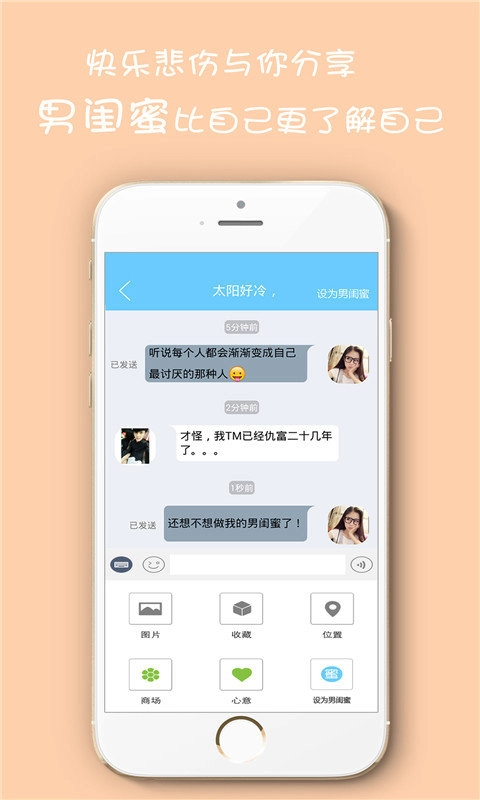要是你正想找一位能贴心陪伴的情感伙伴,或者希望在生活里获取更多实用的建议和帮助,那男闺蜜App绝对是你的最佳选择。它不光能满足你的情感需求,还能在生活的方方面面给你提供有力支持,让你的生活变得更丰富更精彩。马上体验,开启专属于你的男闺蜜之旅吧!