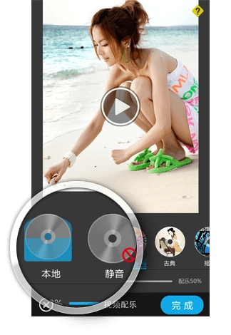 注:在配乐的时候,可以通过下方的音量显示条调节原声和配乐声的比例,或者使原声消声。