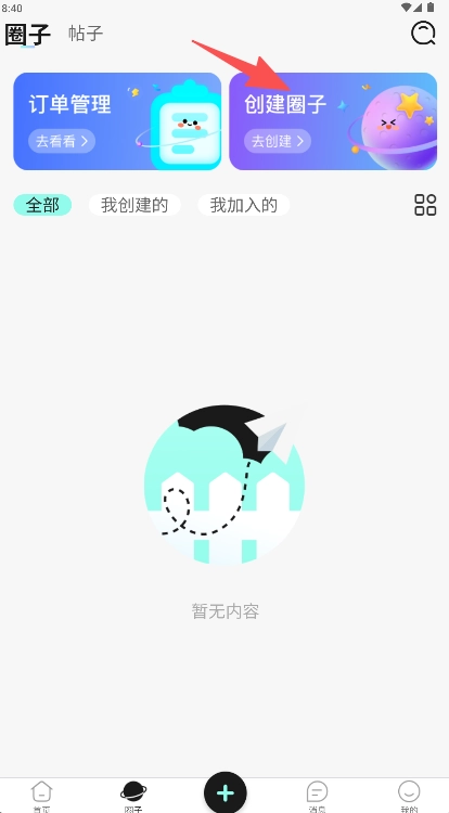 你可以在首页底部的导航栏里找到“圈子”选项,点击它就能进入创建功能的选择页面。