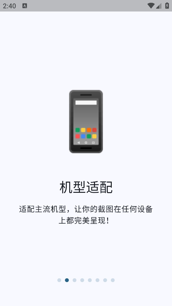 安装完成后第一次打开应用,会出现操作引导界面,向左滑动屏幕就能浏览,使用起来十分简便,仅需两个简单步骤就能导出带有高清外壳的截图。