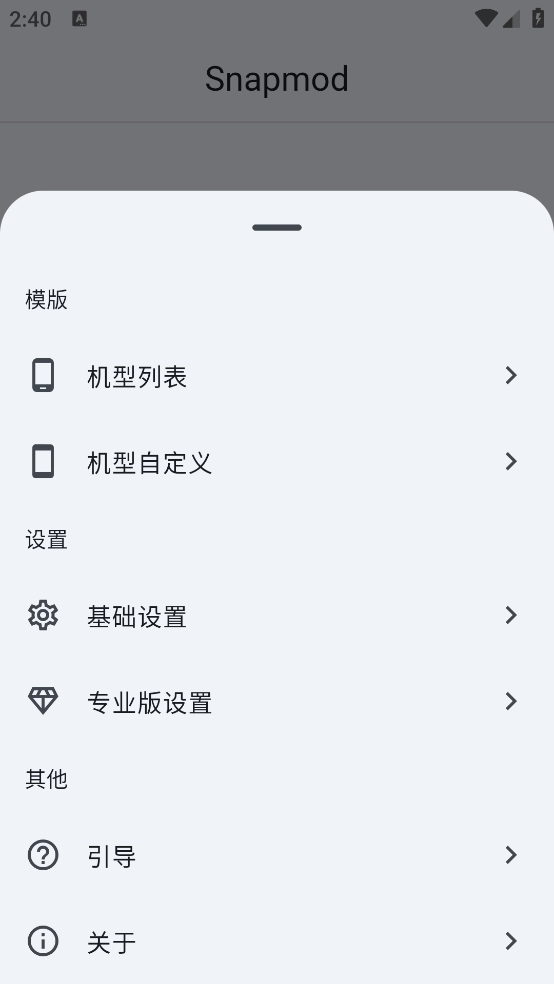 有多款机型可供选择,支持自动从截图里提取主题色,也能通过高斯模糊处理来充当背景等功能。完成向导查看后,点击右下角的“DONE”即可进入。