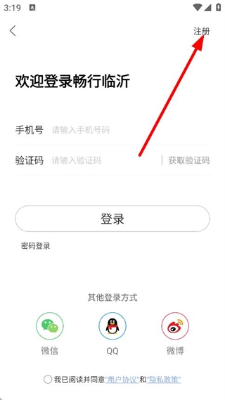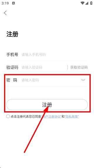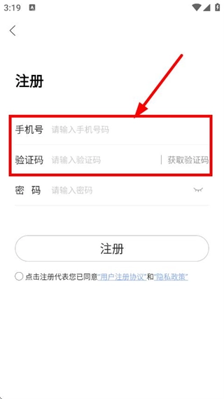 在注册页面,先输入手机号,接着点击“获取验证码”按钮,然后输入收到的验证码。