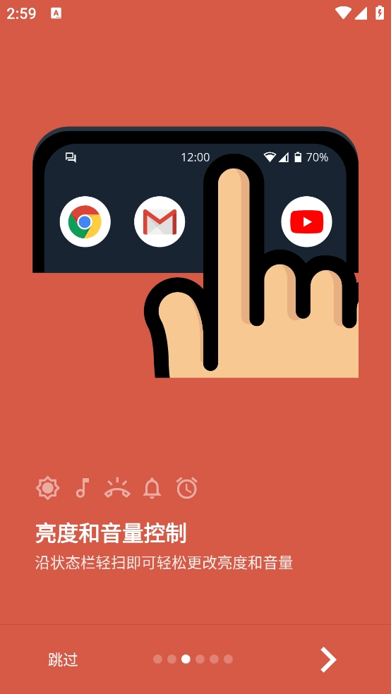 只需沿着状态栏滑动即可轻松更改亮度和音量