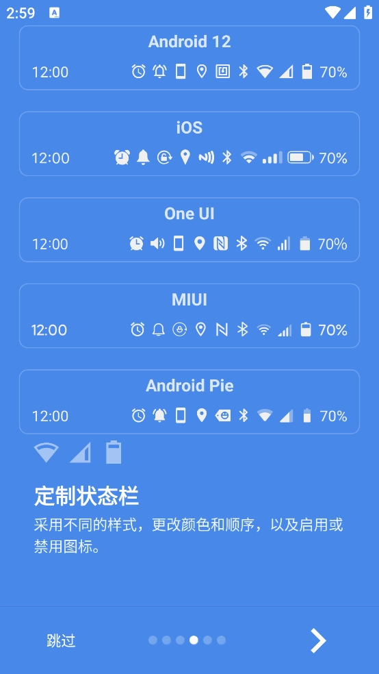 这是一款能够让用户自定义手机状态栏的辅助工具,借助它用户可以轻松对自己的状态栏进行全方位的修改。