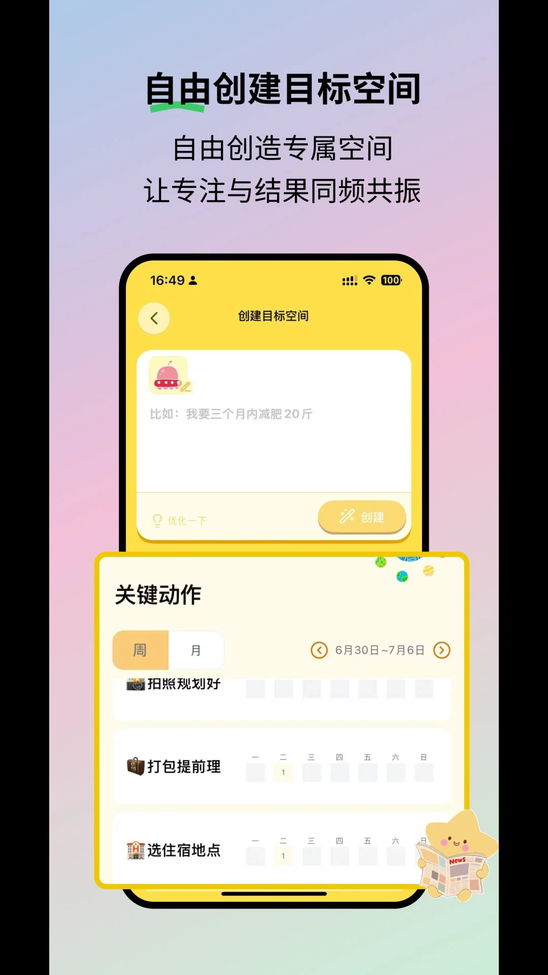 > 打造目标专属空间:为每一个目标构建独立的专属区域,让生活能够聚焦于目标之上。