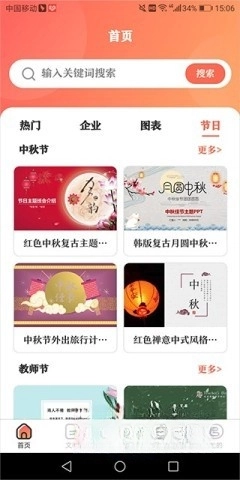 节日类涵盖中秋、教师节等节日主题模板,适用于特定节日的庆祝与祝福场景。