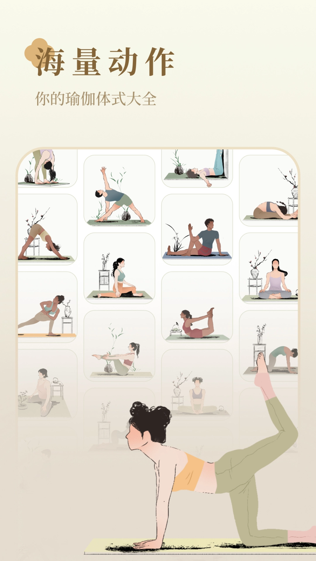 涵盖100多种独特瑜伽及拉伸动作,支持用户根据自身进度与需求自由搭配,打造个性化课程。