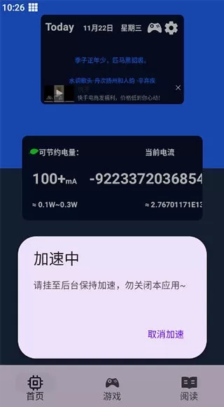注意:开启加速功能后要一直挂在后台