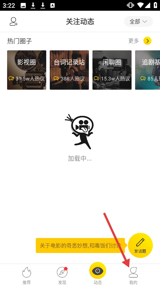 在动态关注页面,点击右下角的【我的】按钮,就能进入个人中心页面。