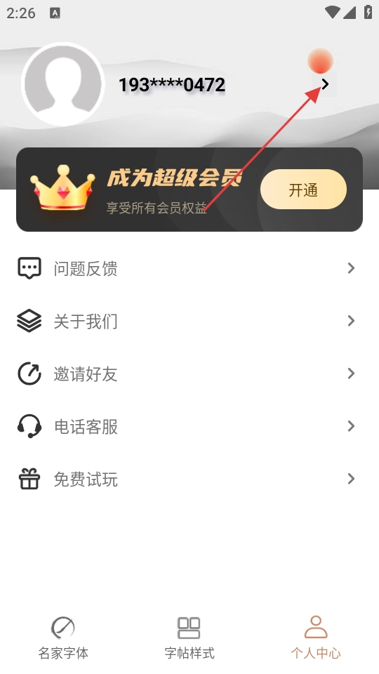 在个人中心页面,点击手机号旁边的箭头图标,就能进入账号信息页面。