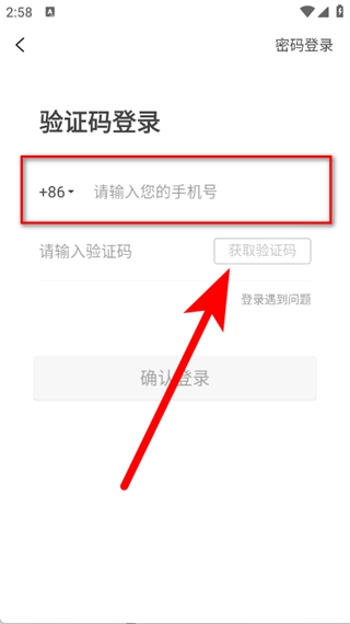 在登录页面,输入手机号后,点击获取验证码。