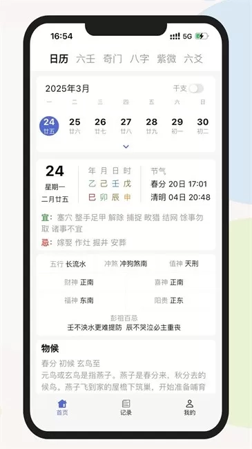 轻点对应的日期,便能即刻获取该日期的宜忌信息,并知悉节气详情。