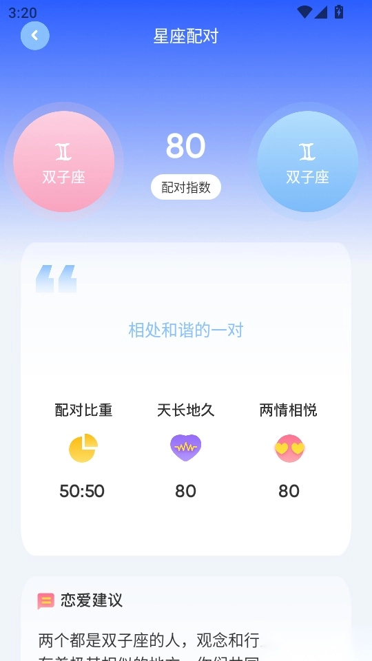很多用户常常借助星座进行配对选择,并且配对的准确度相当高。