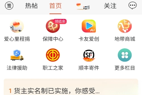 【线上社区】货车司机交流经验、分享感受的聚集地,内容涵盖实时路况、经验交流、新闻资讯、沿途风光、卡友相会等方面。
