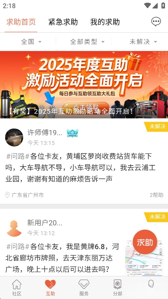【互助】货车司机专属在线互助社区,提供在线问答与线下救援服务