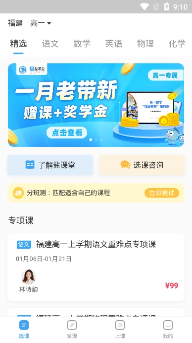 盐课堂专注于为学生打造个性化学习体验,会依据学生的学习状况与兴趣偏好,智能推送适配的学习内容。与此同时,这款软件支持在线互动与实时答疑,便于学生和老师、同学展开交流,及时化解学习过程中的疑难问题。另外,软件还具备学习进度追踪和数据分析功能,助力学生更清晰地认识自身的学习状态与进步情况。
