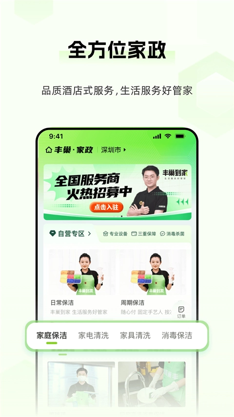 丰巢到家,是您身边的生活服务管家!我们提供日常保洁、家电清洗等全方位的家政服务,让您足不出户就能享受安心又有保障的到家服务,为您的生活增添便利与舒适。
