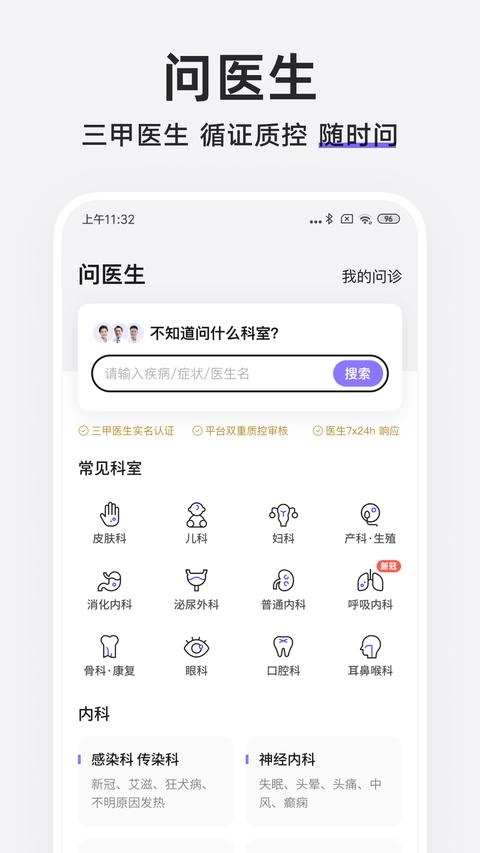 汇聚妇科、儿科、皮肤科等多领域的三甲医院知名医生,全天候在线接诊,可提供在线问诊及处方指导等服务。