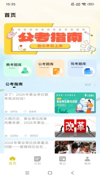 我们提供专属教学平台,支持公考指南学习、教考题库练习以及驾考题库学习等服务。
