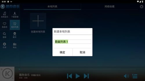 3、为自己的列表取名,否则系统自动默认歌曲列表1。