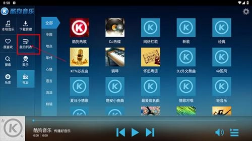 首先进入播放器界面,选择“我的列表”。