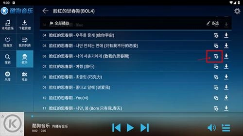 6、我们找到自己想加入歌单的歌曲,按图示点击添加。